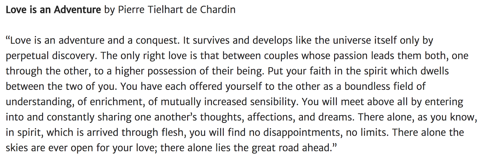 Ceremony Reading Love Is An Adventure By Pierre Teilhard De
